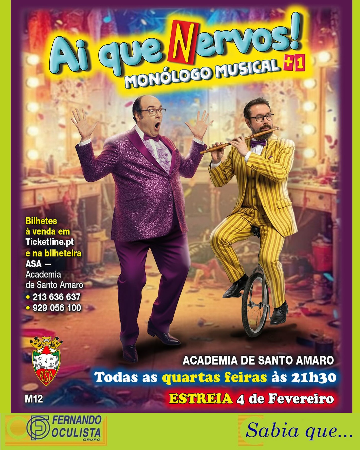 Podem adquirir bilhetes diretamente através do 923 127 287 indicando que vêm do FERNANDO OCULISTA
